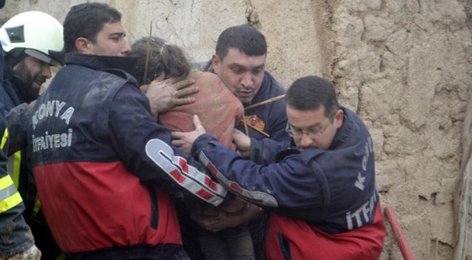 Konya'da kömür kovasını doldurmak için evlerinin yanındaki depoya giren çocukların üzerine kerpiç yapı çöktü. Olayda 1 kişi hayatını kaybetti.