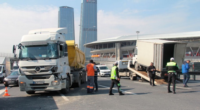 TEM otoyolu Seyrantepe mevkisinde hafriyat kamyonu ile bir kamyonet çarpıştı. Araç içerisinde sıkışan kamyonetin sürücüsü polis ekiplerince kurtarılarak hastaneye sevk edilirken kaza nedeniyle yolda trafik oluştu.