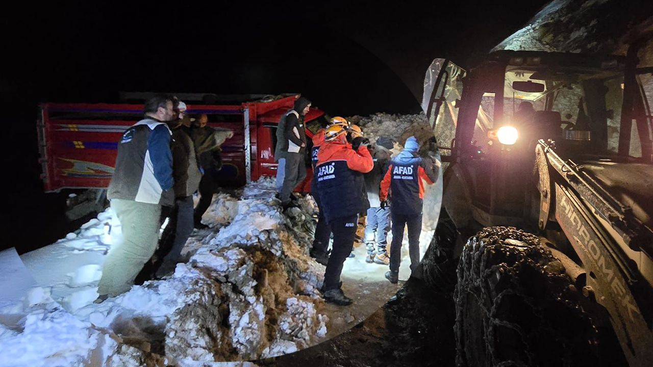 Yolda seyir halinde bulunan ve içinde hayvanların da yer aldığı bir kamyonete çığ çarpması sonucu uçurumun kıyısında askıda kaldı.