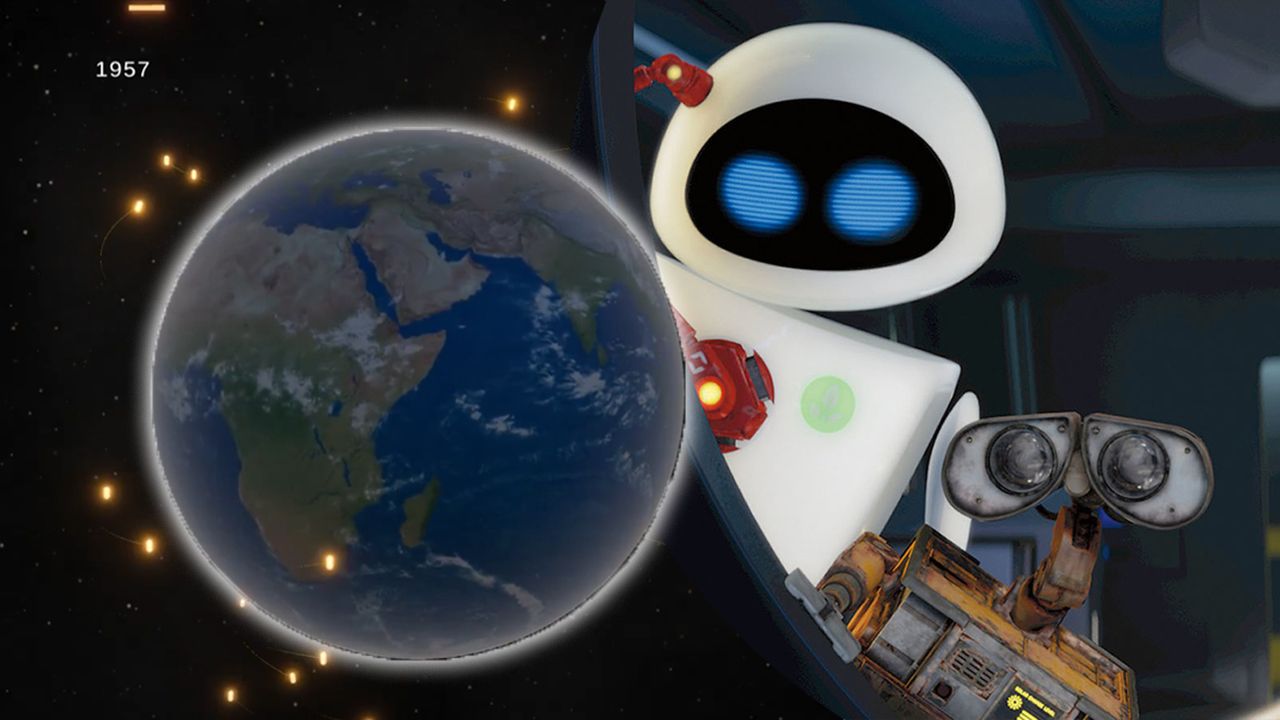 Pixar Animation Studios'un 2008 yapımı 3D animasyon filmi "Wall-e" filmini hatırlatan infografik video, dünyanın etrafında ne kadar uydu olduğunu gözler önüne serdi.