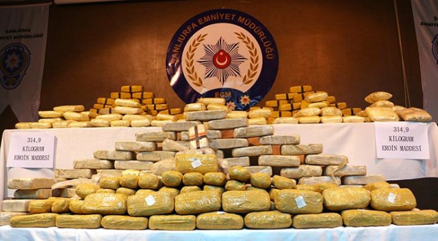 Şanlıurfa'nın Siverek ilçesinde yol kontrolü sırasında bir kamyonda 314 kilo 900 gram eroin ele geçirildi. İl Emniyet Müdürlüğü Kaçakçılık ve Organize Suçlar Şube Müdürlüğü ekipleri, Van'dan Adana'ya giden kamyonu, Siverek ilçesinde yol kontrolü sırasında durdurdu. Kamyonda yapılan aramada 314 kilo 900 gram eroin bulundu. Operasyonda uyuşturucuyla bağlantısı olduğu değerlendirilen Van ve Adana'da düzenlenen eş zamanlı operasyonda aralarında kamyon sürücüsünün de bulunduğu M.T, Y.T, İ.E ve Y.İ. gözaltına aldı. Ele geçirilen uyuşturucu, İl Emniyet Müdürlüğü hizmet binasında basına gösterildi.